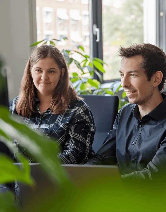 Linda: Ich war von Anfang an Teil des Teams, alle arbeiten auf Augenhöhe, das gibt es selten. Für die individuelle Weiterentwicklung ist Raum, in Communities of Practice oder einfach beim Pair Programming.Marcus: Die Arbeit auf Augenhöhe ist wirklich ganz besonders hier. Es gibt keine störenden Hierarchien, jeder kann seine Ideen einbringen und echten Mehrwert schaffen.